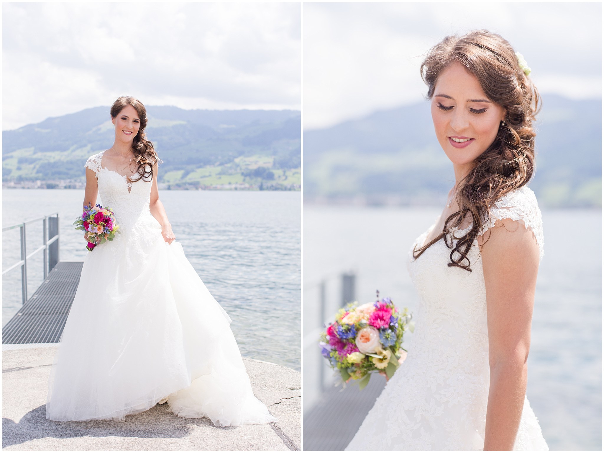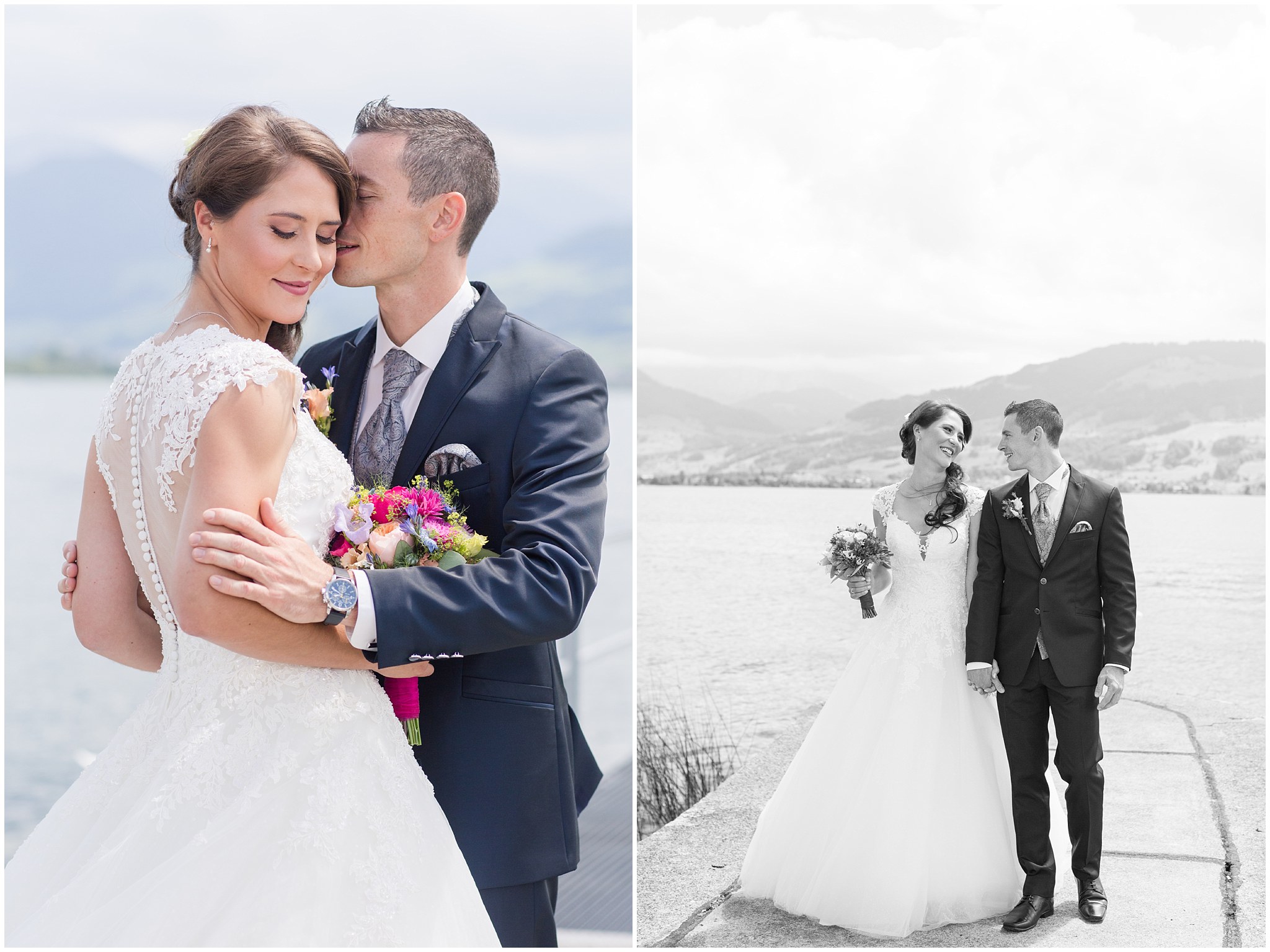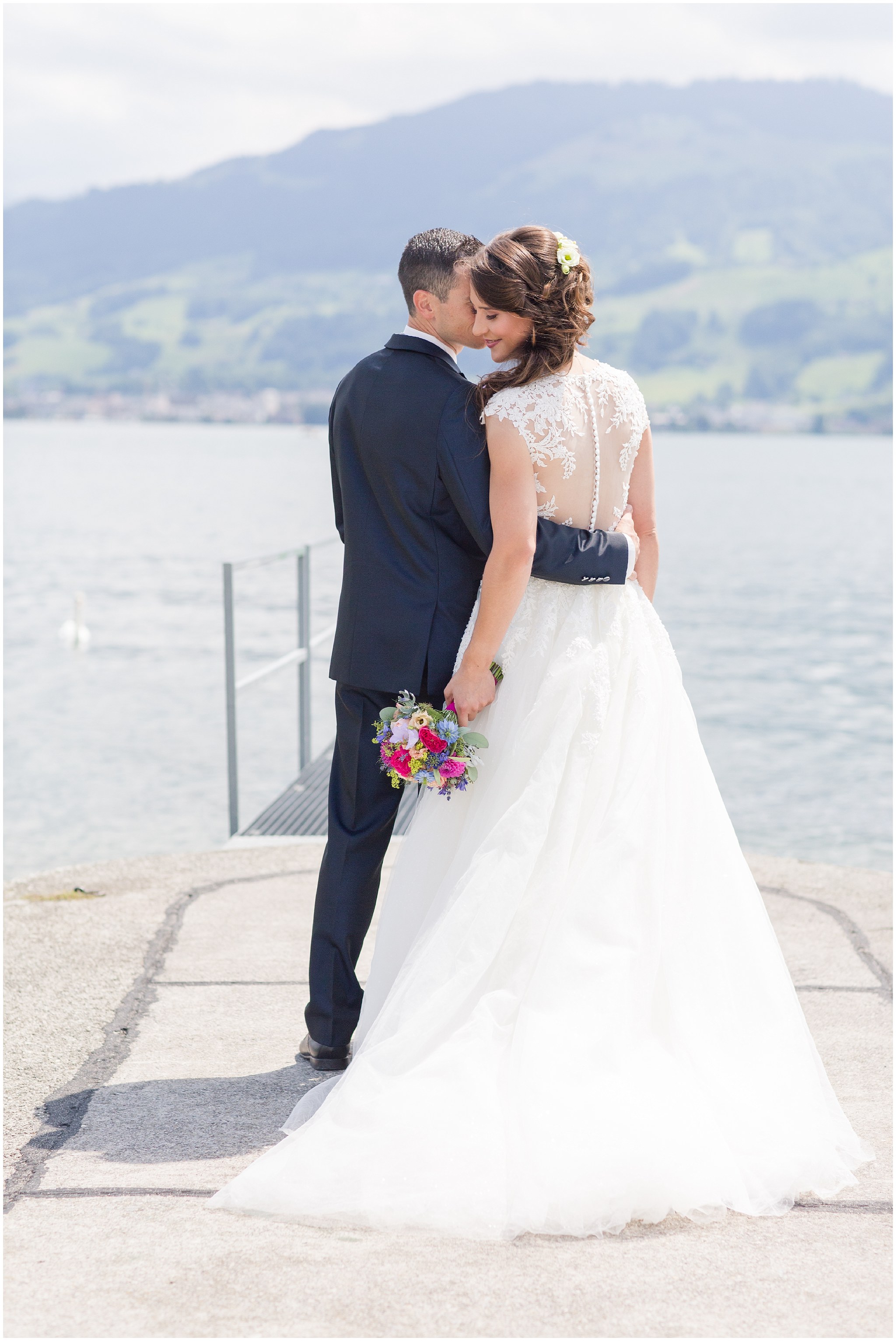 Für die Beiden stand fest, dass sie sich vor der Trauung unbedingt sehen wollten. Ich liebe einen First Look ja, nicht nur der Moment ist absolut einzigartig und emotional, sondern es entstehen auch sehr emotionale Fotografien! Wir machten die First Look-Aufnahmen direkt bei der Busskirch auf dem Steg mit dem Blick zum Zürisee. Besonders wichtig ist es hierbei übrigens auf das Licht zu achten – die Sonne steht zur Zeit des First Looks i.d.R. sehr hoch, weshalb der Standort und Blickwinkel zum Fotografieren sehr bewusst gewählt werden muss. Die First Look Aufnahmen von Nadia und Yves sind einfach umwerfend geworden!